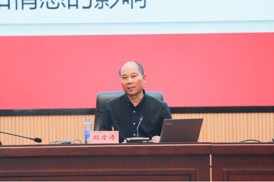 刘方涛教授首先通过“说点心里话”的形式向大家阐明了自己对于教学工作的认识。他强调,教师要有担当使命,欣逢盛世,当不负盛世。会上,刘教授就“为什么要推进课程思政”“高校教师应如何在课程中融入思政元素”“课程思政能做什么”等问题展开了具体论述。