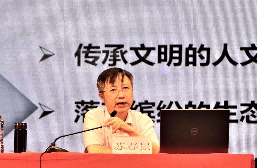 苏春景教授为在场的老师们推荐《汉字起源》、《大英百科全书》、《中国大百科全书》、《易经》等学习书籍,鼓励老师们潜心学习,提升自己。他向在场老师介绍了自学课、启发课、作业设置、创新设计、阅读启发、思政启迪的“六课型单元教学法”。他强调,教学中应引导学生学习中国优秀传统文化,如深读《三国演义》,一读三国读故事,二读三国读谋略,三读三国读人生,以《三国演义》的人生史观,融入思政教学,实现学校的三个转型,由知识型转化成文化型、文化型转化成智慧型、学科型转化成综合型,有大格局、大思想、新面貌。