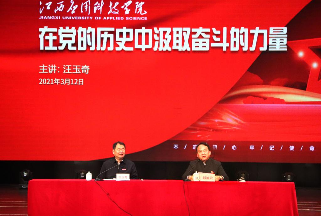 报告会上,汪玉奇强调了在全党开展党史学习教育的重大意义,阐述了开展党史学习教育的必要性和要求,围绕“学党史、悟思想、办实事、开新局”,以独特的理论视角、坚定的党性情怀、感人至深的党史故事,在历史与现实,理论与实践的贯通中生动讲述了中国共产党艰苦卓绝的奋斗历程和伟大精神。