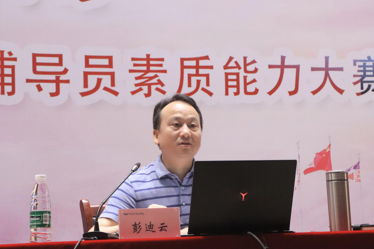 彭迪云以《立德树人根本任务与辅导员能力建设的思考》为题,分析了当前大学生思想政治教育工作面临的挑战和存在的问题,详细讲解了新时代高校辅导员的职责使命。