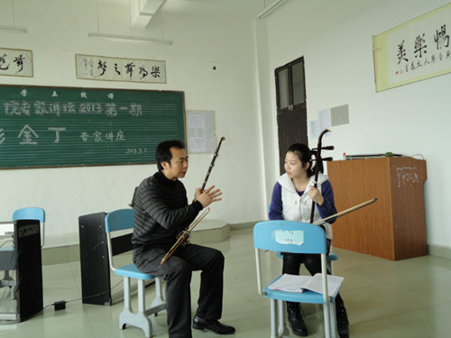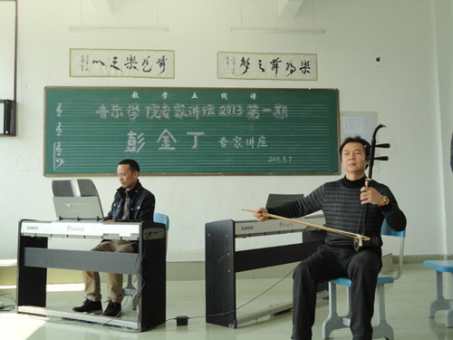 讲座在彭金丁老师和胡大春老师合作表演的一首二胡曲《赛马》拉开帷幕。