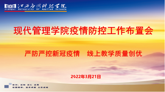3月21日下午,现代管理学院在综合楼1001会议室召疫情防控工作布置会。分院分管校领导房小珍副校长莅临会议,会议由分院院长谢远健主持,分院学工科、教务科以及在校教职工参加此次会议。