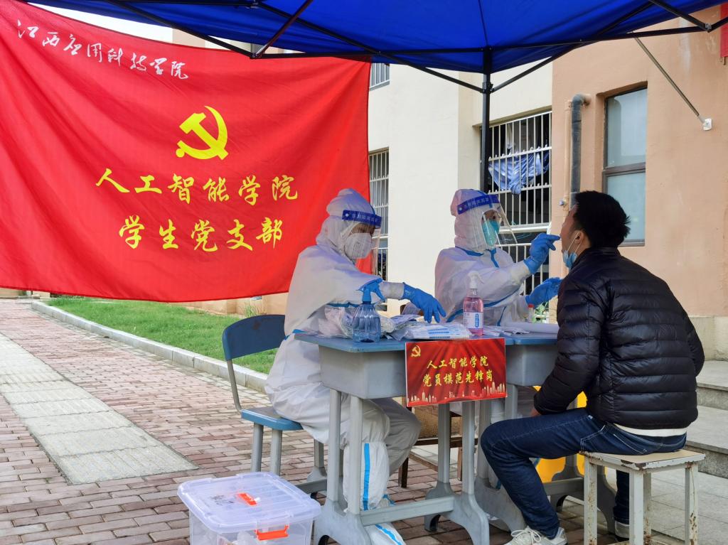 “疫情就是命令,防控就是责任”,南昌市疫情警报拉响,在学校党委的统一部署下,人工智能学院全体辅导员团结一心,毅然决然地挺身而出,生动地诠释了辅导员这个身份在他们心里所承载的责任和担当。辅导员们承担起组织学生核酸检测的任务,他们提前到达指定地点,准备组织学生有序排队。长长的队伍前面,总能看见不辞辛劳、反复强调注意事项的他们。一句句严肃认真的话语里,是为护学生平安周全的殷切关怀。