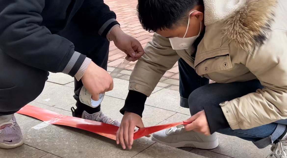 在得知第三轮核酸检测工作安排后,人工智能学院辅导员火速响应,立即自发成立了党员教师志愿服务先锋队,其中不仅有院领导、教师党员,还有普通党员和入党积极分子。22日,辅导员任郑伟与学生志愿者人员一起布置场地,在学生楼栋核酸检测点划分和张贴1米距地贴,工作直至晚上近十点。