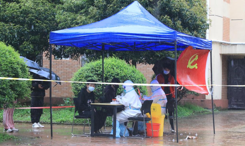 “非常快,排队、扫码、检测,一系列采样程序在宿舍楼一气呵成,既节省了时间,又避免了聚集,保证了安全,为所有一线工作人员的辛勤付出点赞。”国际商务学院学生李俊杰由衷感叹。“今天早上下这么大的雨,为了方便我们检测,老师们都在篮球场集中排队冒雨做核酸检测,而我们只需要在宿舍楼栋下就能快速完成核酸检测,为学校暖心的安排点赞!”音乐学院学生胡宁润说到。