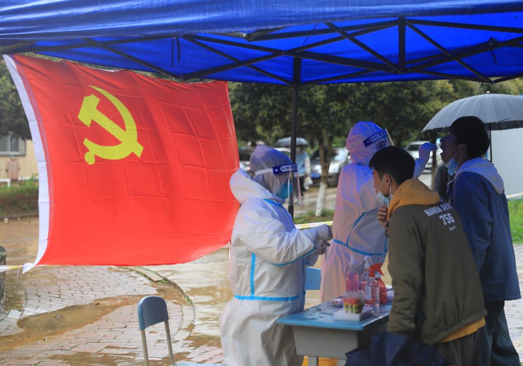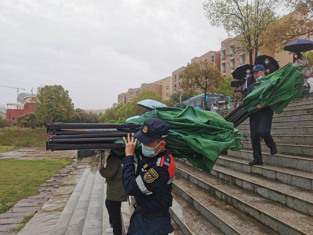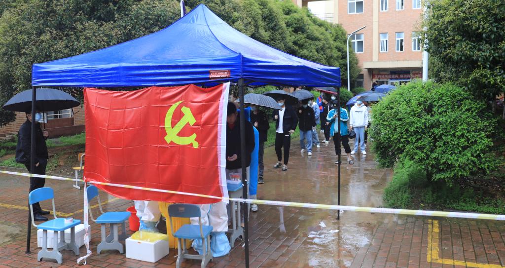 学校党委充分发挥基层党组织战斗堡垒作用,号召党员站出来、冲在前,党员先锋们与核酸检测工作人员协同配合开展工作。在他们的引导下,师生员工积极配合下,效率有了显著的提高。核酸检测的现场,教官队暖心的为没有带伞的同学撑伞,青年突击队冒雨清理地上的积水,为同学们铺上垫板。到处可见党员先锋和志愿者们的温情与关怀。