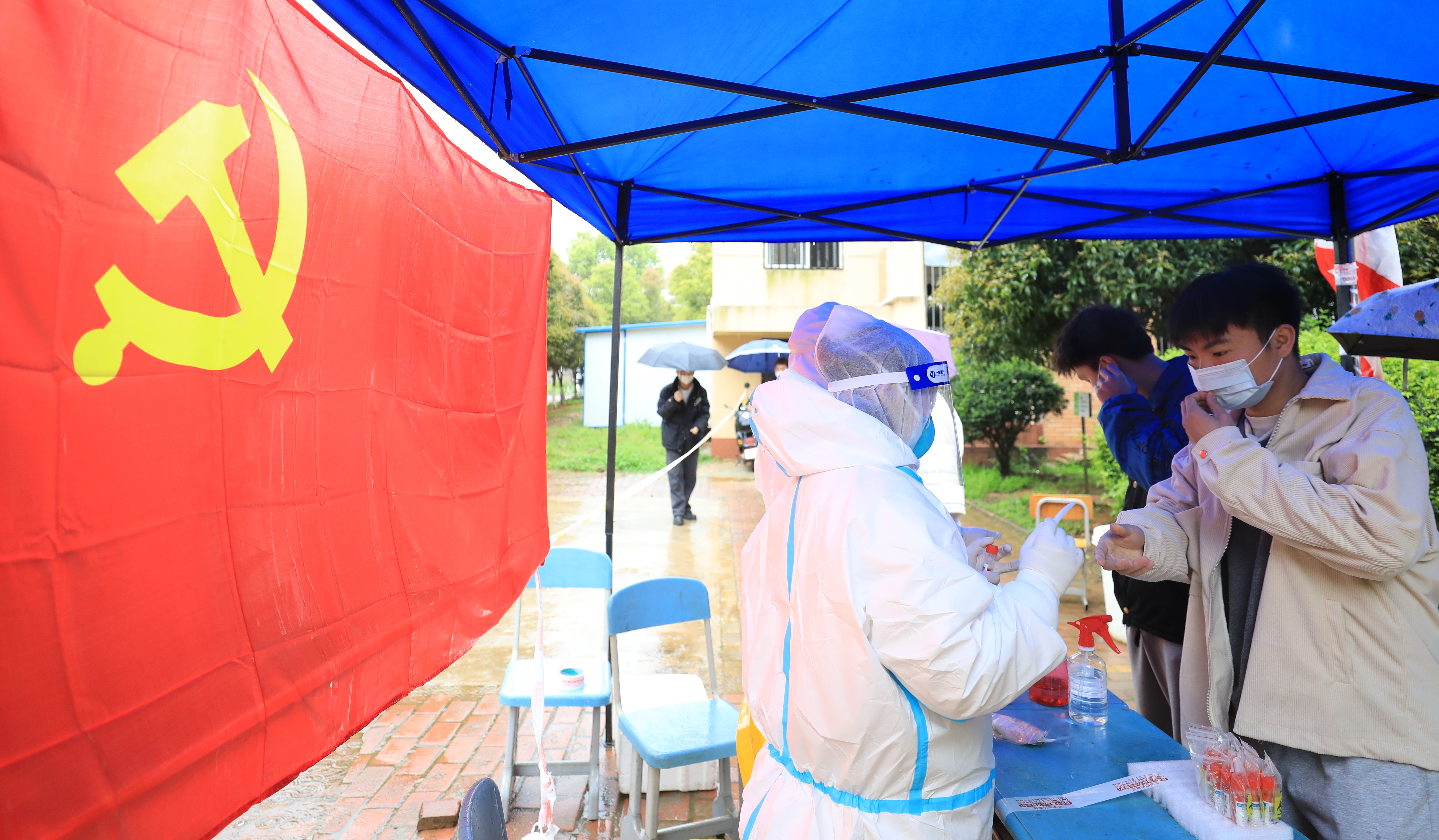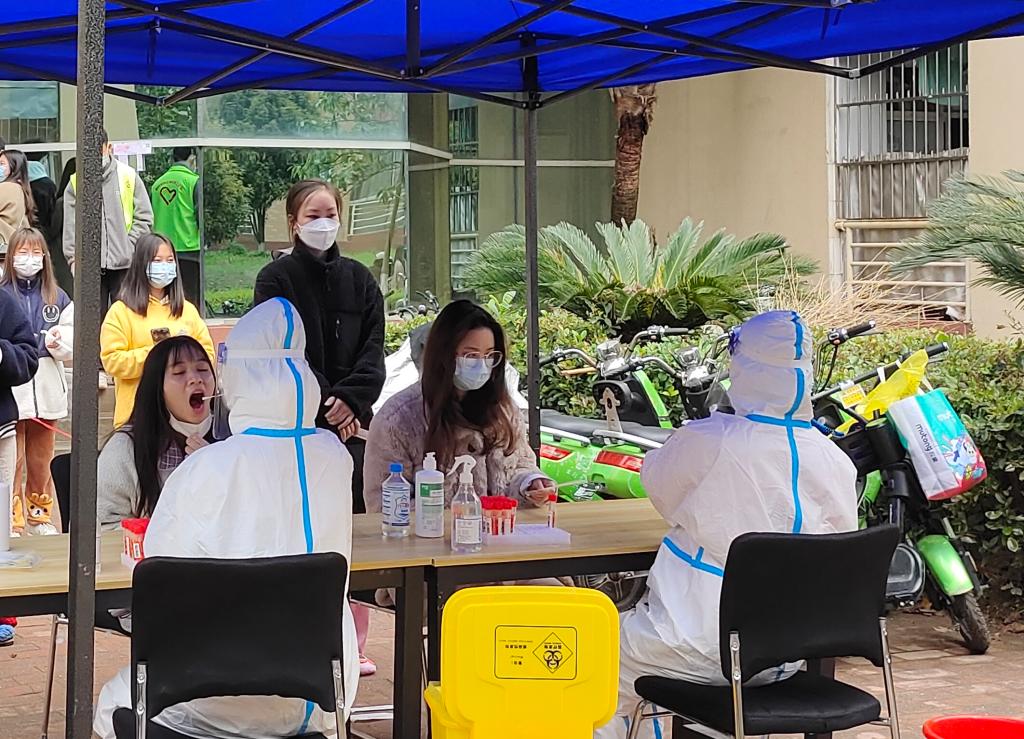 “南昌近期降温,又下雨,不用顶着冷风出门做核酸,十分感动!而且楼栋检测效率非常高,几分钟就可以解决,大家都井然有序的排队,很有秩序!”音乐学院王润玺同学说道。