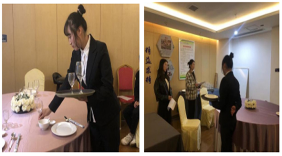 在比赛前,酒店管理教研室刘影、刘妍、王青青以及胡镜斌四位老师担任选此次比赛的指导老师和评委。各位指导老师都对同学们进行了赛前培训,让他们详细了解比赛的流程、步骤以及注意事项,并提醒学生珍惜每一次实践操作的机会,拿出自己最佳的状态去应赛。