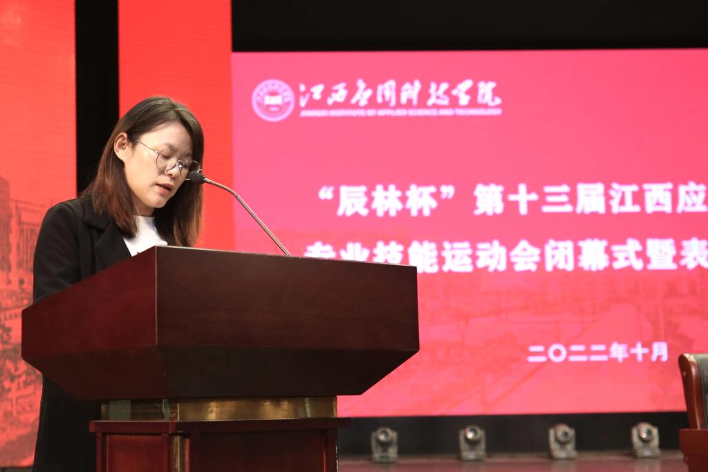 10月24日下午,72886必赢网站在音乐厅举办第十三届“辰林杯”专业技能运动会闭幕式暨表彰总结大会。常务副校长干甜,副校长刘光华、李建萍、胥懋云、房小珍、刘春斌、张敏、邓海平出席,相关处室负责人、各教学院负责人及部分师生代表参加。会议由副校长李建萍主持。