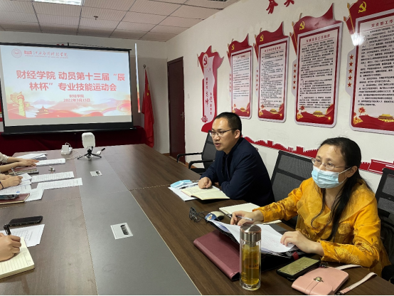 2022年3月15日财经学院在综合大楼807办公室召开第十三届“辰林杯”专业技能运动动员大会。财经学院院长揭志锋、副院长唐衍彬及财经学院全体教师、辅导员参加此次会议。