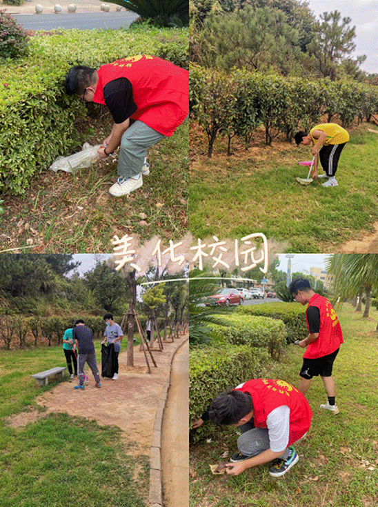 通过每位同学挥洒的汗水,显而易见的是柏油路上一尘不染,草丛·草坪面上的绿油油,让白色垃圾消失在了这片绿茵之中。为我们营造了一个舒适的学习生活环境,每个人在劳动中发挥自己的优点与特长,并且与同学互相合作,让一个个垃圾远离校园。