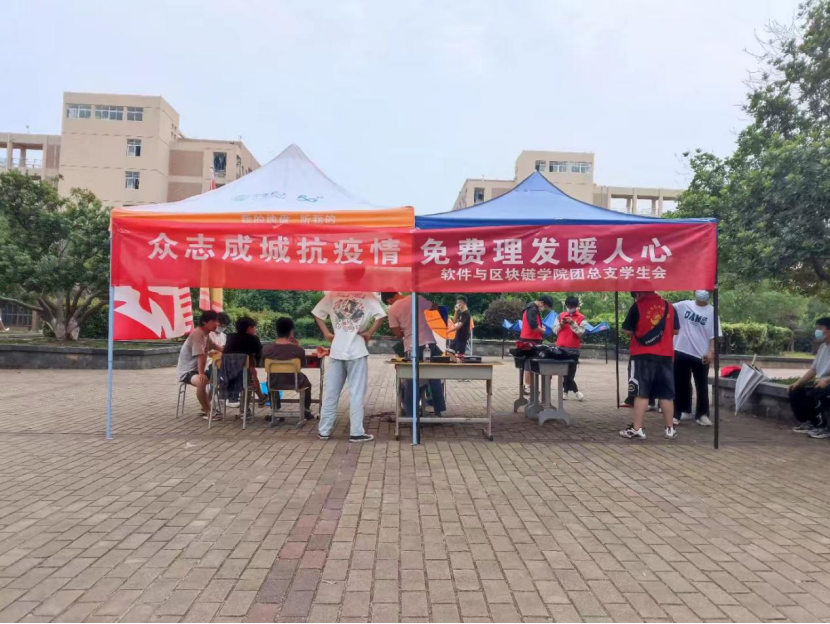 疫情不松懈,劳动不停歇。劳动教育是新时期党对教育的新要求,是中国特色社会主义教育制度的重要内容。软件与区块链学院认知贯彻落实学校关于进一步加强新时代劳动教育的实施方案,于5月7日下午在一食堂小广场举行免费理发、修眉劳动教育。通过以劳树德、以劳增智、以劳强体、以劳育美四种形式,教育引导学生崇尚劳动,明确弘扬劳动精神、重视劳动教育对自身成长的重要意义,建立崇尚劳动的价值共识和行动自觉。