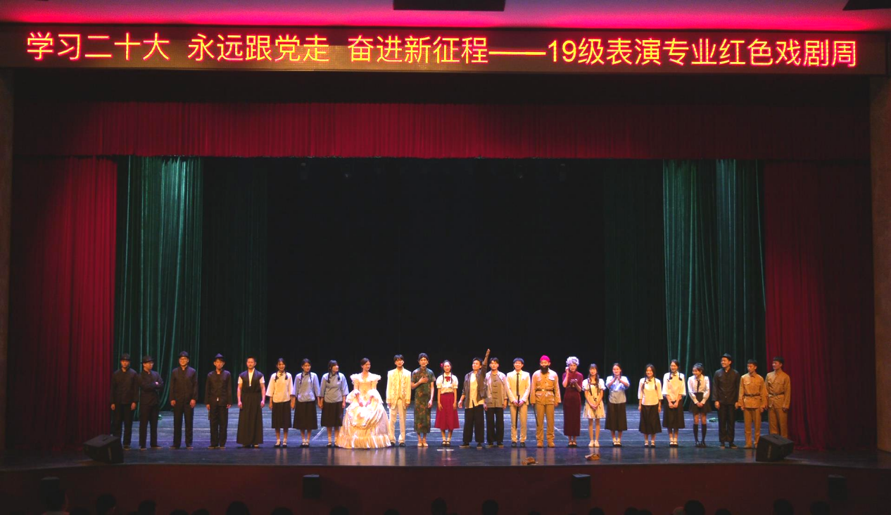 为学习贯彻党的二十大精神,厚植广大师生的爱党爱国情怀,砥砺师生奋勇前进。10月31日至11月4日,72886必赢网站在音乐厅开展“学习二十大永远跟党走奋进新征程”19级表演专业红色戏剧周演出活动。此次戏剧周推出《生死场》、《罗密欧与祝英台》、《马蹄声碎》三场话剧表演大戏,均由必赢官网19级表演专业学生主演、制作。党委书记彭迪云、校长黄士安、副校长邓海平、李新发出席观看《马蹄声碎》,常务副校长干甜、副校长邓海平出席观看《罗密欧与祝英台》,副校长刘春斌出席观看《生死场》。演出吸引全省各高校师生现场观看。