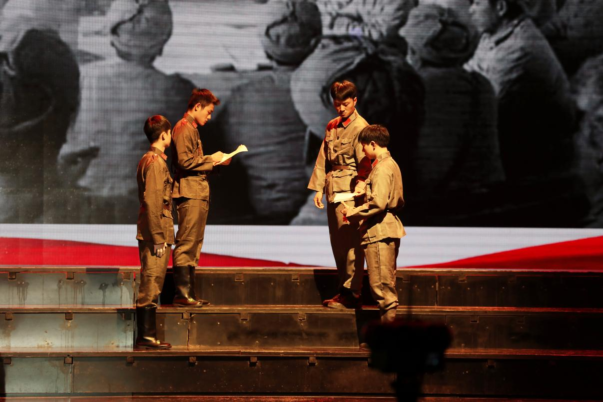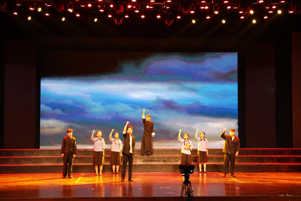 此次思政大课一改以往思政课“老师讲、学生听”的传统模式。课前,学生在老师的指导下策划、编排《风暴》《长征》《三湾改编》等多部舞台情景剧。青年教师通过选题、试课、打磨,最后和同学们一起走上舞台深情演绎。通过老师的讲,学生的演,色彩绚烂的舞台变成了思想政治课的讲台,自编自演情景剧本变成了生动的红色教材,师生同台共同打造了一场生动的“艺术思政课”。