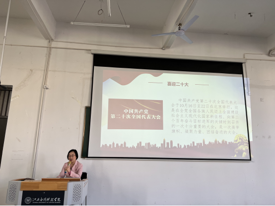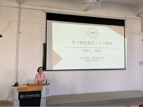 为推动学习宣传贯彻党的二十大精神不断走深走细走实。2022年11月8日下午,胥懋云副校长深入一线开展学习领会党的二十大精神,会议由财经学院院长揭志锋主持,财经学院、国际商务学院全体教职工参加此次会议。