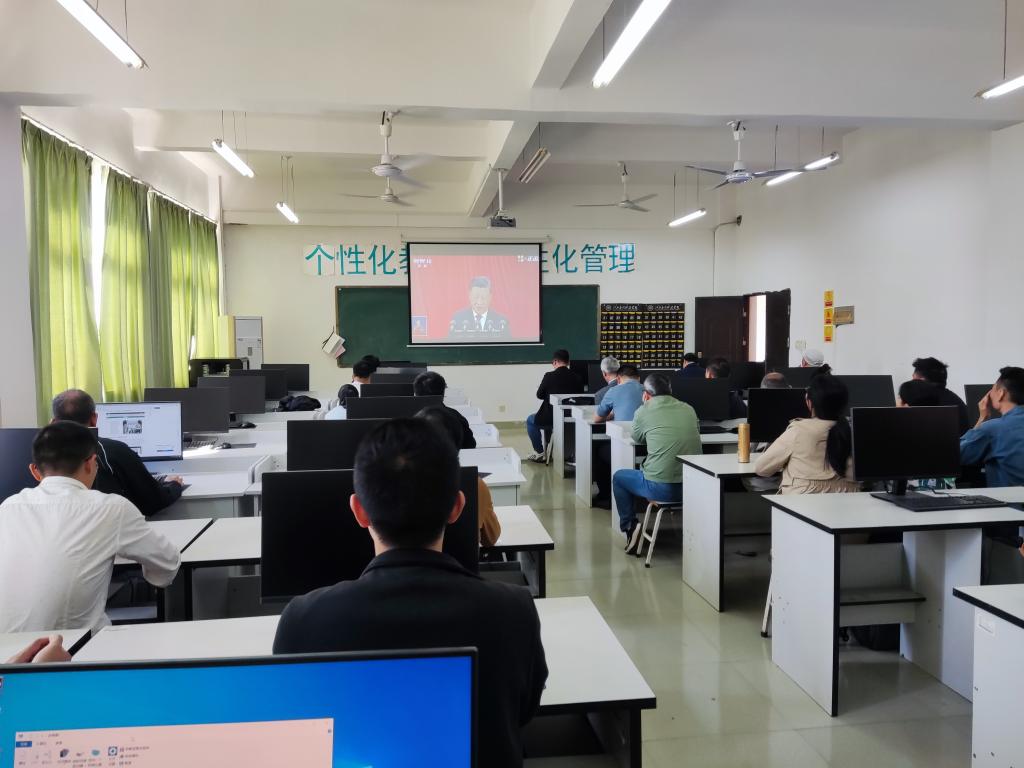 人工智能学院党总支采取形式灵活、集中与分散相结合的方式,通过电视、网络直播等多渠道共组织全体师生党员、发展对象、积极分子、团学干部300余人收听收看开幕会盛况,认真聆听习近平总书记代表十九届中央委员会作的重要报告。