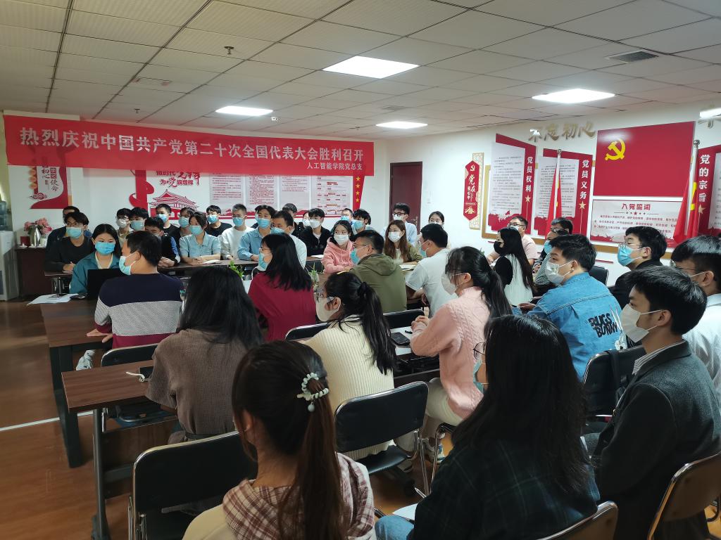 10月16上午,人工智能学院党总支全体党员集中收看党的二十大开幕会实况,认真聆听习近平总书记代表第十九届中央委员会向党的二十大作的工作报告。