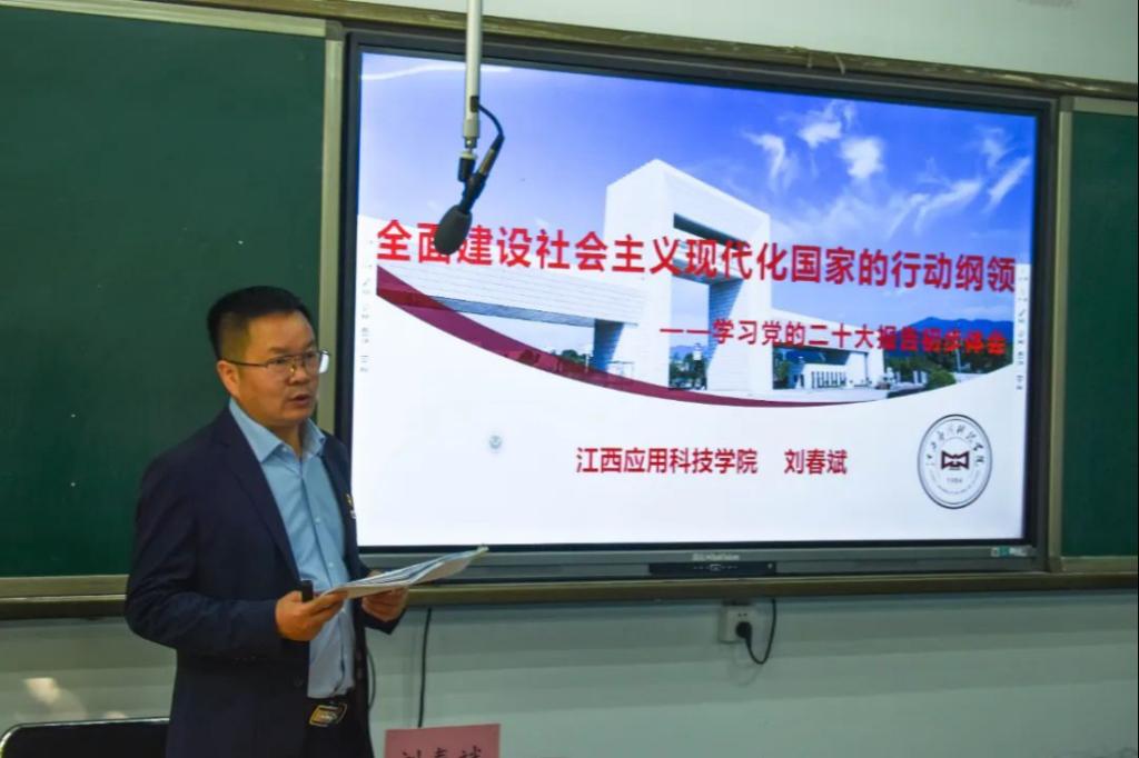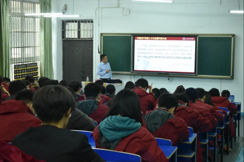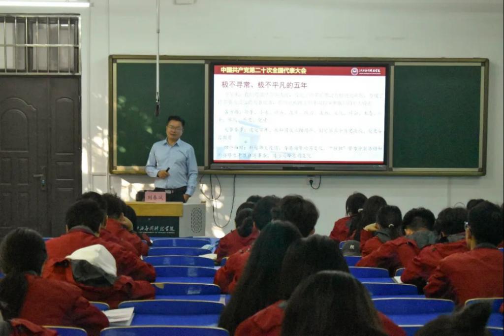 在凝心聚力学习宣传贯彻党的二十大精神的关键时期,学校第十四期青马工程培训班专题学习会正有序进行。11月9日,副校长刘春斌围绕读二十大报告、学二十大主题、悟二十大内涵,为校级大骨班成员,各学院团总支第一副书记、学生会执行主席作 以“全面建设社会主义现代化国家的行动纲领”为主题的党的二十大报告分享。