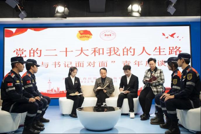 为更好地倾听同学们的心声,了解学生的学习生活需求,增进学校师生交流,帮助学生解答学业和生活上的问题。11月29日上午,党的二十大和我的人生路“我与书记面对面”青年座谈会在学校融媒体中心温馨举办。彭迪云书记同大家交流,聊学习生活,说应科发展,谈青年成长。