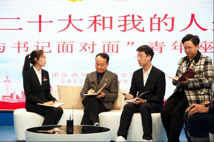 学校党委书记、政府督导专员彭迪云,党委副书记、纪委书记江星,党委委员、副校长刘春斌,2022年“中国大学生自强之星”获得者代表,应科青年突击队队员参与座谈,座谈会由团委书记张荆主持。