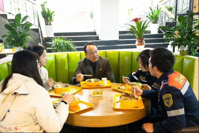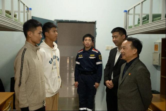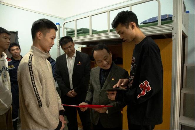 座谈会后,彭迪云来到食堂和退伍复学学生宿舍,与同学们交流日常学习生活情况。彭书记表示,通过今天的座谈,感受到应科团员青年青春心向党的活力和精神面貌,看见了同学们在应科院的大舞台上,在团组织的“大熔炉”中的进步。