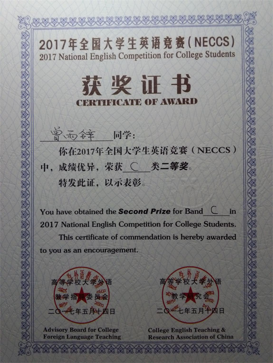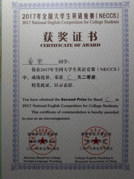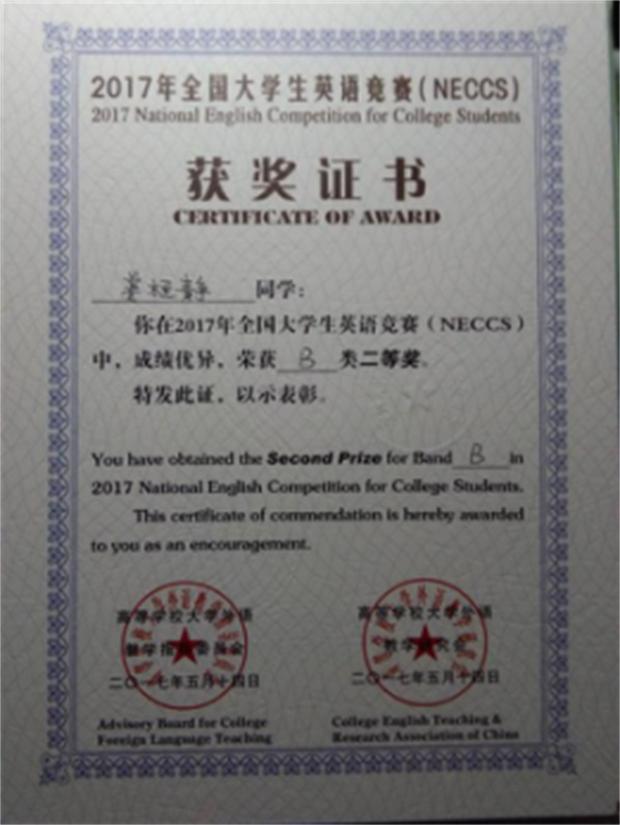 据悉,必赢官网已在全国大学生英语竞赛中连续六年获优秀单位组织奖。