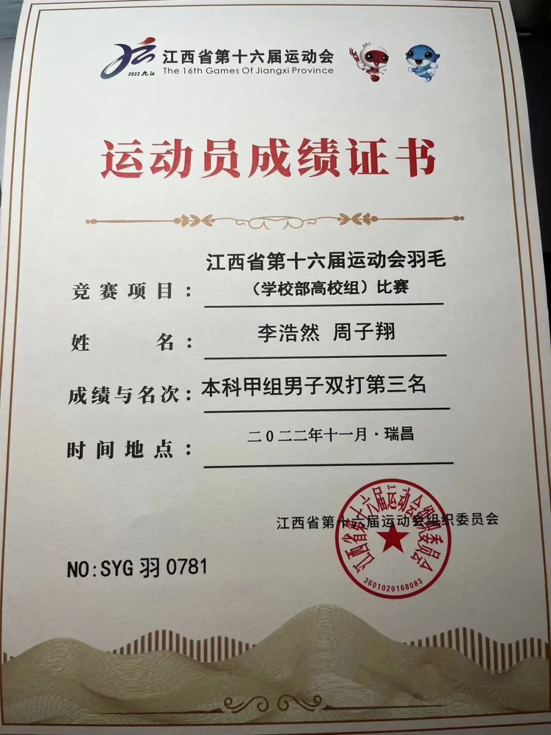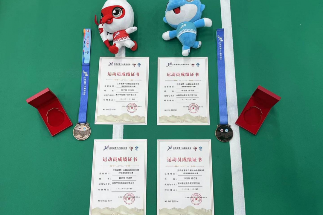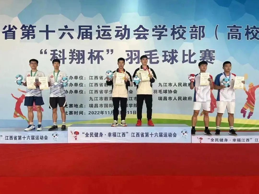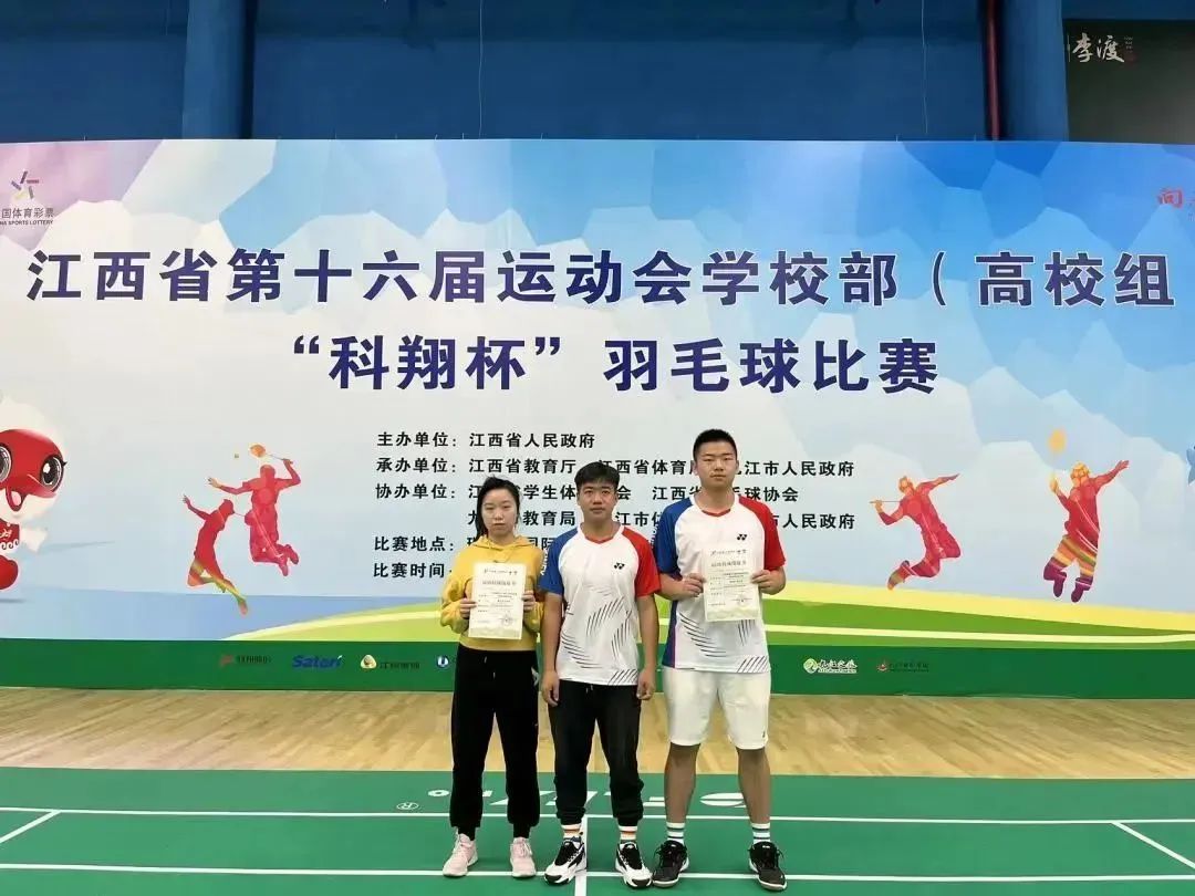 热烈庆祝软件与区块链学院李浩然同学在江西省第十六届运动会羽毛球(学校部高校组)男子双打比赛中荣获季军。同时李浩然同学在混合双打比赛中荣获第五名。