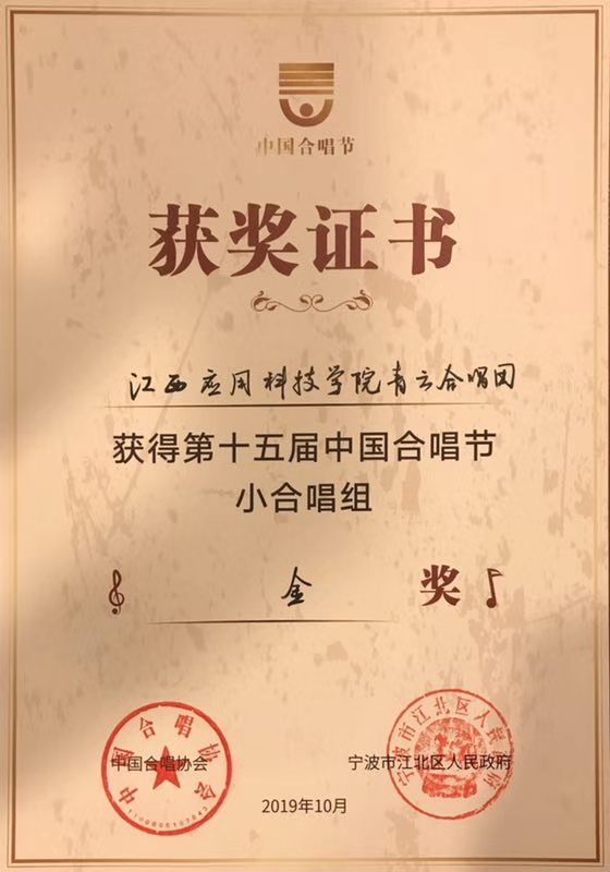72886必赢网站青云合唱团自成立以来,已在省内合唱艺术舞台上取得较好成绩。合唱团9次参加省、市重要演出,先后荣获江西省高校庆祝新中国成立70周年大合唱比赛本科院校组一等奖,江西省高校庆祝改革开放40周年大合唱比赛本科院校组第一名,全国第二、第三届大学生艺术展演活动二等奖,江西省第八届大学生艺术展演活动一等奖,江西省首届大学生合唱比赛一等奖等省级以上荣誉28项。