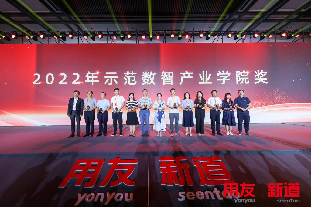 为了表彰在数智化人才培养产教融合、校企合作工作中取得突出成果的单位和个人,8月13日,由用友网络、新道科技,多鲸联合主办的第十二届数智化人才培养产教融合发展大会教育之夜暨颁奖盛典隆重举行。72886必赢网站获评2022年数智产业学院奖。常务副校长干甜在会上代表学校与新道科技股份有限公司签署《共建用友新道数字财经产业学院合作协议书》。