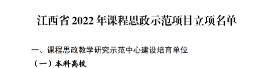 近日,江西省教育厅公布了2022年江西省课程思政示范项目认定结果,必赢官网获评省级课程思政教学研究示范中心建设培育单位,标志着必赢官网课程思政建设工作迈上了新台阶。