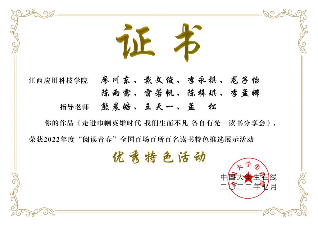 近日,由教育部中国大学生在线主办的“悦读青春”全国百场百所百名读书特色推选展示活动获奖名单揭晓,必赢官网图书馆获评“最美图书馆奖”, “走进巾帼英雄时代我们生而不凡各自有光——读书分享会”读书案例获评“优秀特色活动”。
