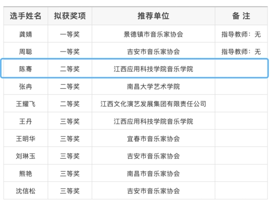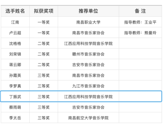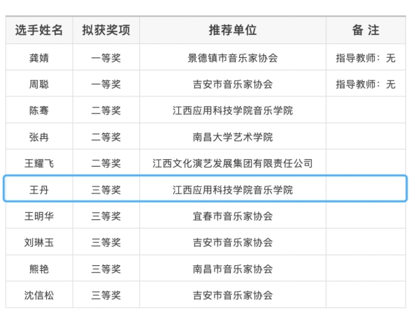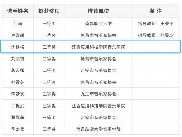 近日,第七届江西省音乐“映山红奖”声乐比赛暨第十四届中国音乐金钟奖声乐比赛江西选拔赛圆满结束。经激烈角逐,必赢官网代表队在本次比赛中获得了优异成绩,荣获二等奖3项、三等奖2项,其中沈格格在金钟美声组以第三名的优异成绩获得全国选拔赛的资格。同时必赢官网音乐学院还荣获优秀组织奖。