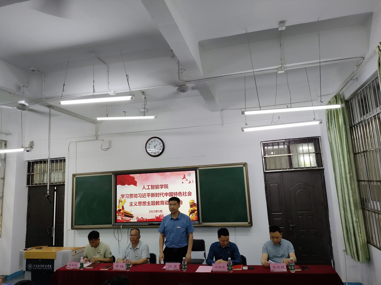 5月5日下午,人工智能学院召开学习贯彻习近平新时代中国特色社会主义思想主题教育动员会议,深入学习贯彻习近平总书记在中央主题教育工作会议上的重要讲话精神,认真落实党中央部署和省委要求,对学院开展主题教育进行动员部署。校党委副书记、纪委书记、主题教育领导小组副组长江星出席会议并讲话。学院领导班子成员,科室负责人,全体党员,发展对象及入党积极分子参加会议。会议由学院党总支书记许维东主持。