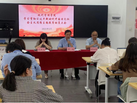 为深入开展学习贯彻习近平新时代中国特色社会主义思想主题教育,以主题教育为抓手,推动教育高质量发展,带动全体师生广泛开展主题宣讲活动,引导广大青年、教师更加深刻领悟“两个确立”的决定性意义,增强“四个意识”、坚定“四个自信”、做到“两个维护”,争做习近平新时代中国特色社会主义思想的坚定信仰者和忠实实践者。2023年5月5日下午,我院在劲松楼204召开了学习贯彻习近平新时代中国特色社会主义思想主题教育动员大会。校长助理兼党总支书记章斌,学院党总支委员、院长谢远健,党总支纪检委员、副院长漆圆方出席,学院全体教职工以及学生党员代表参加。此次动员大会由漆圆方主持。