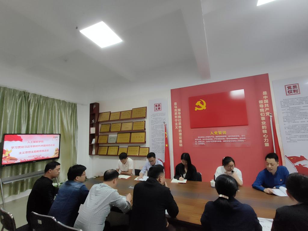 会上,学院主题教育领导小组成员汇报当前工作推进情况及下一步工作计划的汇报。