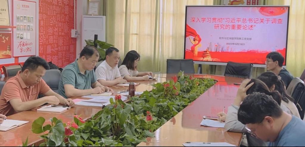 5月16日下午,软件与区块链学院教工党支部在三达楼210召开“习近平总书记关于调查研究的重要论述”专题集中学习研讨会,深入学习贯彻习近平总书记关于调查研究的重要论述,不断增强做好调查研究的思想自觉、政治自觉、行动自觉,进一步推动教学工作的高质量发展,会议由教工党支部书记卞秀运主持,全体教工党员参加此次会议。