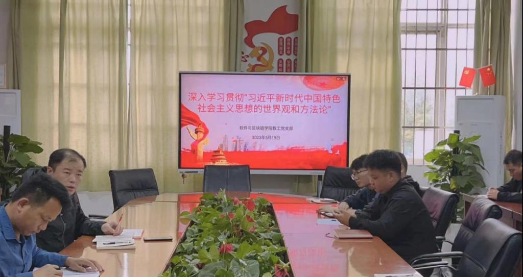 5月19日下午,软件与区块链学院教工党支部在三达楼210召开“习近平新时代中国特色社会主义思想的世界观和方法论”专题集中学习研讨会,深入学习贯彻习近平新时代中国特色社会主义思想的世界观和方法论,进一步坚持好、运用好贯穿其中的立场、观点、方法,会议由教工党支部书记卞秀运主持学习,全体教工党员参加此次会议。