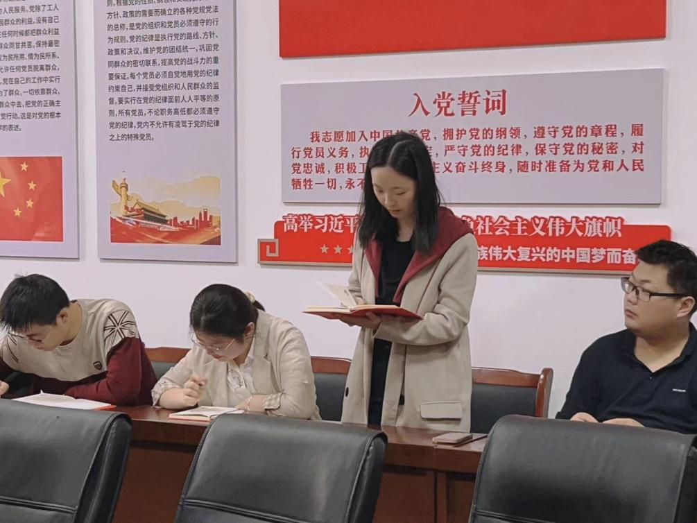 图1:教工党支部书记卞秀运带大家领学《谱写马克思主义中国化时代化新篇章》主要内容