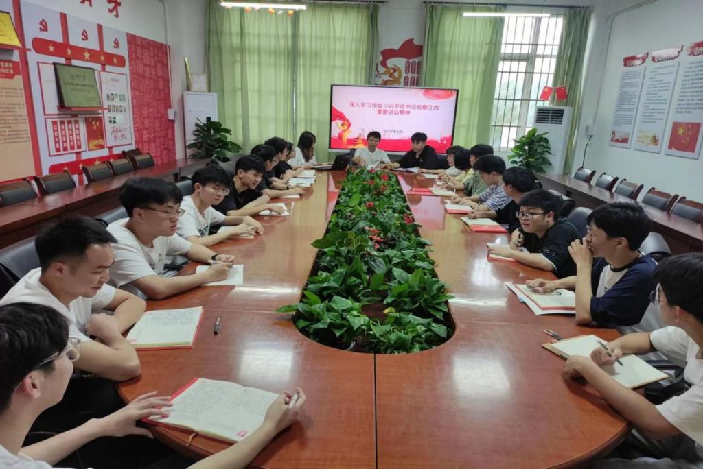 在习近平总书记视察江西四周年之际,为更加深入的学习领会习近平总书记视察江西重要讲话精神,践行习近平新时代中国特色社会主义思想主题教育,动员全体同志感恩奋进、接续奋斗,全力践行“作示范、勇争先”的殷殷嘱托。2023年5月15日软件与区块链学院学生党支部在210党员活动室召开了“深入学习领会习近平总书记视察江西重要讲话精神”专题学习,参会人员为软件与区块链学院学生党支部书记曾不亚,学生党支部组织委员王紫依,学生党支部宣传委员何锦以及全体党员同志。