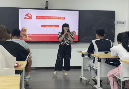 漆圆方在课堂上分别从“以真理的精神追求真理、革命理想高于天、江山就是人民,人民就是江山、自我革命的精神和明理增信崇德力行”六个方面进行深入阐述中国共产党百年辉煌的内在逻辑,并要求大家始终坚持中国共产党的领导,坚定不移跟党走,奋进新征程,建功新时代。