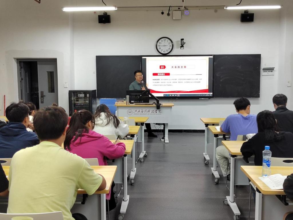 刘伯川以“浅读党的二十大报告”为题,从党的二十大主题、新时代十年的伟大变革、科教兴国战略等方面解读了党的二十大报告,让入党积极分子们对党的二十大报告更加了解,从而进一步学习领悟党的二十大精神。课堂中,他强调了党的二十大的主题,并列举了党的十六大报告至十九大报告的主题进行对比,从对比中寻找党的二十大报告主题与往届党的代表大会主题的共性与差异,帮助大家深刻理解党的二十大报告。