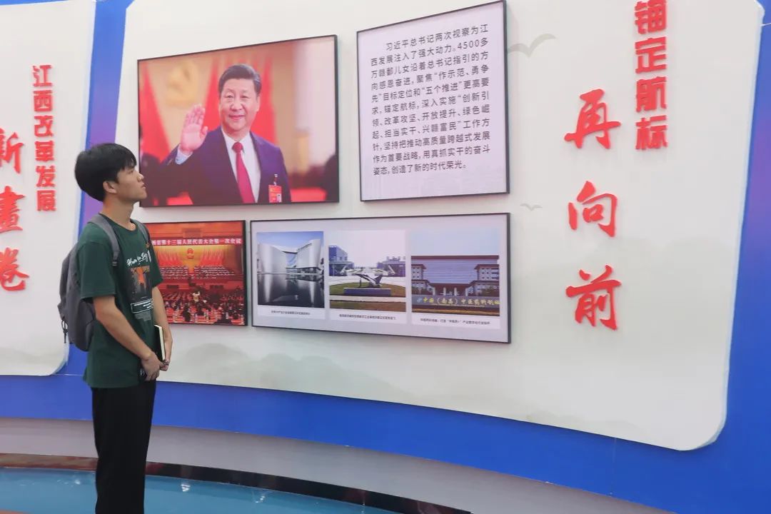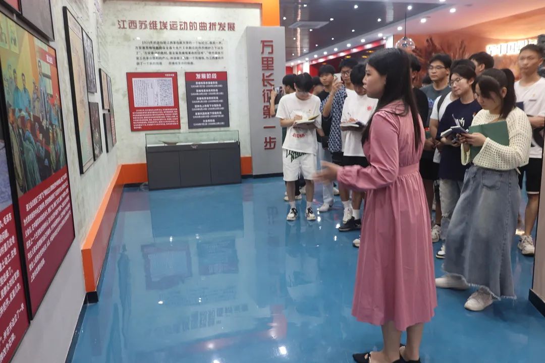 全体学员集中参观了《信念》红色文化记忆馆的“四个摇篮”“一个策源地”和“红土地新征程”六个部分。展馆以《信念》为馆名,以表达对红色江西历史的尊重,对理想信念的坚定。同时,这个馆还是学校思想政治理论课实践教学基地、干部教师理想信念教育基地、红色文化与旅游地学专业集群教学基地,以及面向地方中小学的红色文化研学基地。在讲解员的讲解下,党员同志通过对百年党史中重大历史事件和重要党史人物回顾,深刻感悟党的百年奋斗光辉历程。