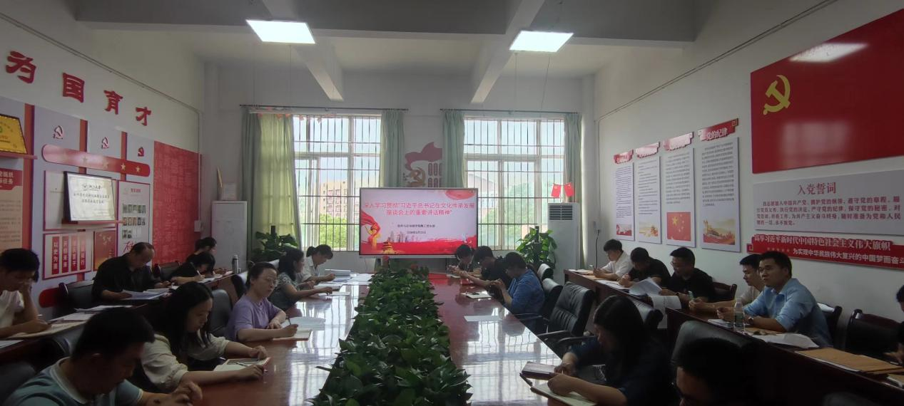 6月25日下午,软件与区块链学院教工党支部在三达楼210召开学习会议,会议内容围绕“坚定文化自信、建设文化强国”展开,进一步深刻理解坚守中华文化立场、传承中华文化基因的重要性,会议由教工党支部组织委员徐燕兰主持学习,全体教职工参加此次会议。