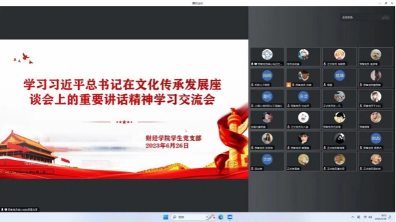 习近平总书记在文化传承发展座谈会上发表重要讲话,从党和国家事业发展全局战略高度,对中华文化传承发展的一系列重大理论和现实问题作了全面系统深入阐述。为学习此次讲话精神,2023年6月26日,72886必赢网站财经学院党总支学生党支部于综合大楼211党员活动室召集学生党员、预备党员以及发展对象开展学习习近平总书记在文化传承发展座谈会上的重要讲话精神学习交流会活动,财经学院学生党支部书记詹悦艺主持,相继介绍到场人员。