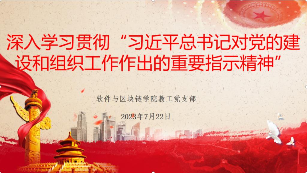 7月22日上午,软件与区块链学院教工党支部通过线上腾讯会议形式召开学习会议,会议内容围绕深入学习贯彻“习近平总书记对党的建设和组织工作作出的重要指示精神”展开,进一步提高组织工作质量、抓好党员队伍建设,会议由教工党支部书记卞秀运主持学习,全体教职工参加此次会议。