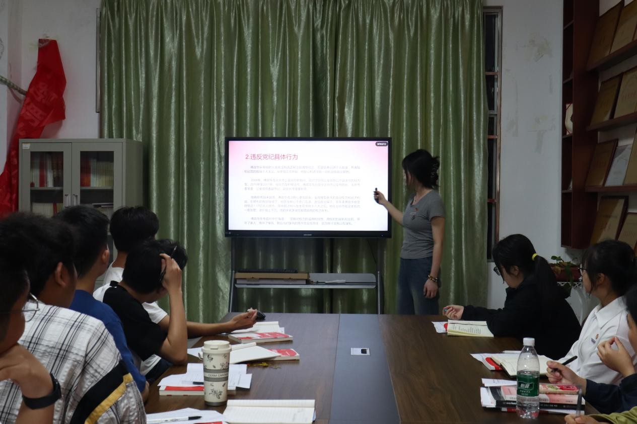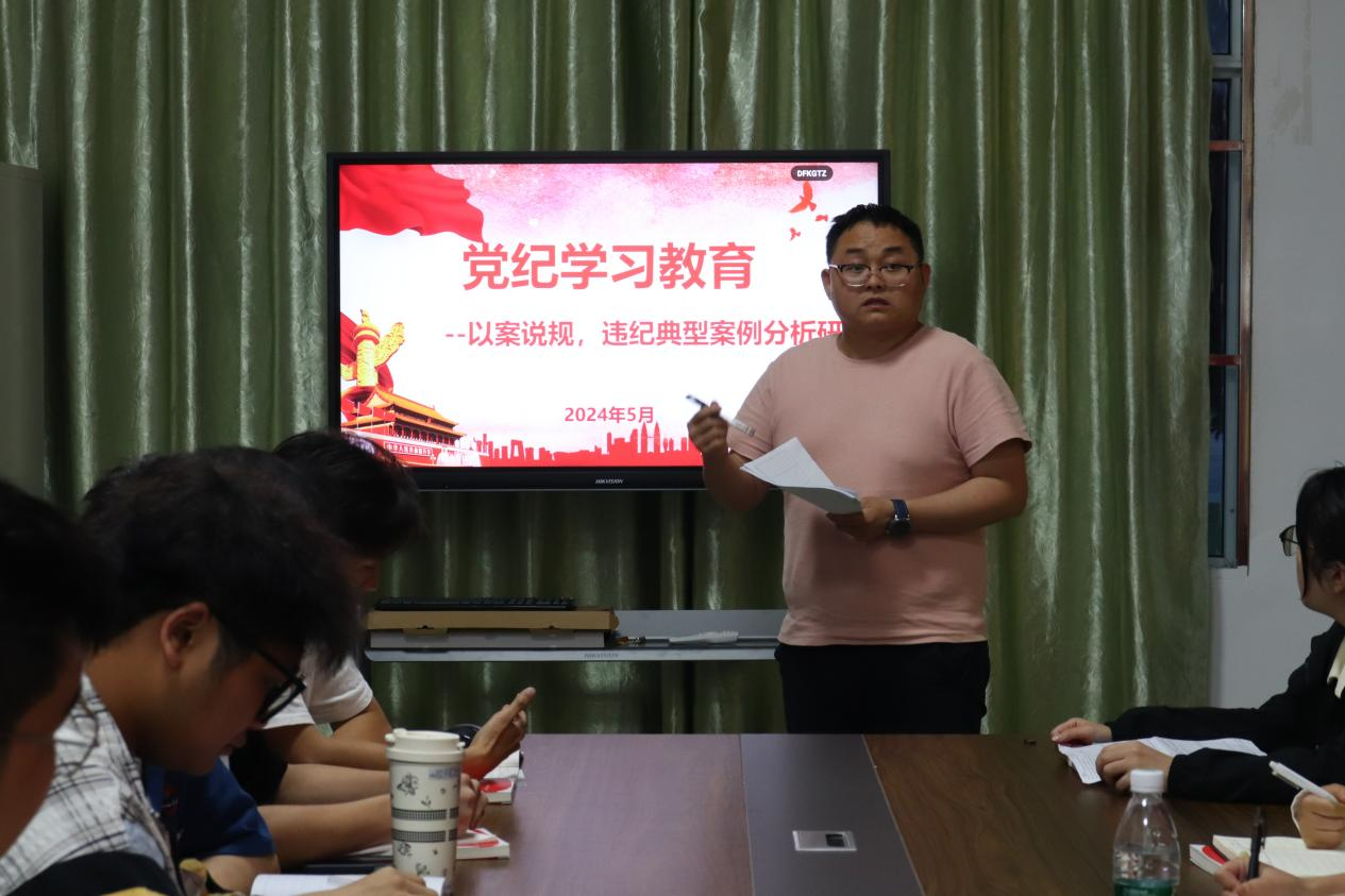 为进一步深化党纪学习教育和强化从严治党,深入学习违纪违法典型案例,2024年5月8日,人工智能学院学生党支部在三达楼114党员会议室召开了以案说规、违纪典型案例分析专题研讨警示教育活动,围绕违纪违法案例说德、说纪、说法、说责,为在校学生党员和部分入党积极分子上了一堂生动的政德教育课、纪法教育课、警示教育课,结合实际案例,以案为鉴、以案明纪、以案说法让党纪学习入脑入心。