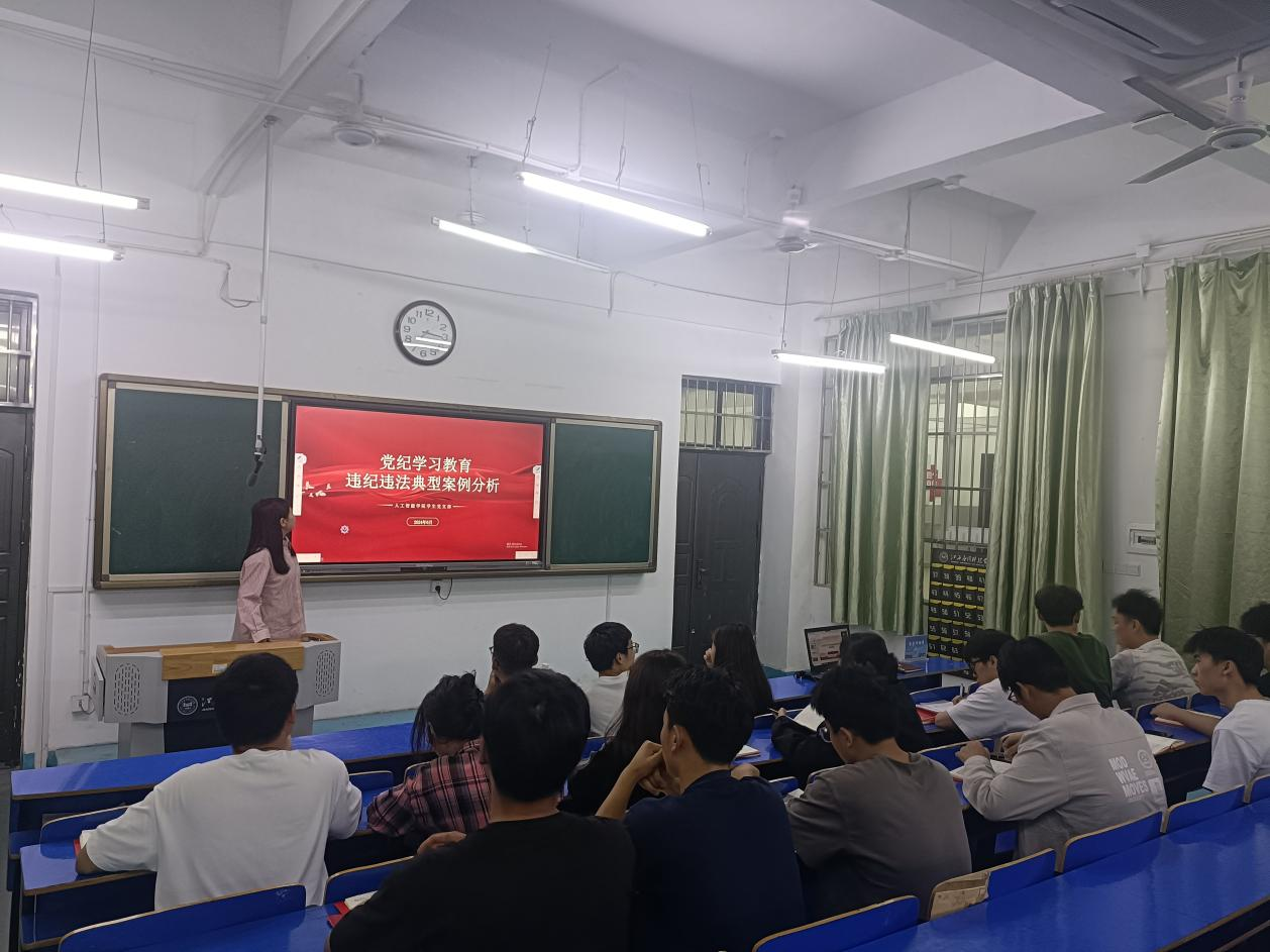 为扎实推进党纪学习教育,用身边人、身边事引导广大党员同志学纪、明纪、知纪、守纪。2024年6月6日晚,人工智能学院学生党支部在三达楼阶梯九教室召开违纪违法典型案例剖析专题会,从典型案例中深刻汲取教训,举一反三警示剖析,推动以案促学、以案促改。本次会议由人工智能学院学生党支部组织委员唐彤婷主持,全体学生党员参加此次会议。