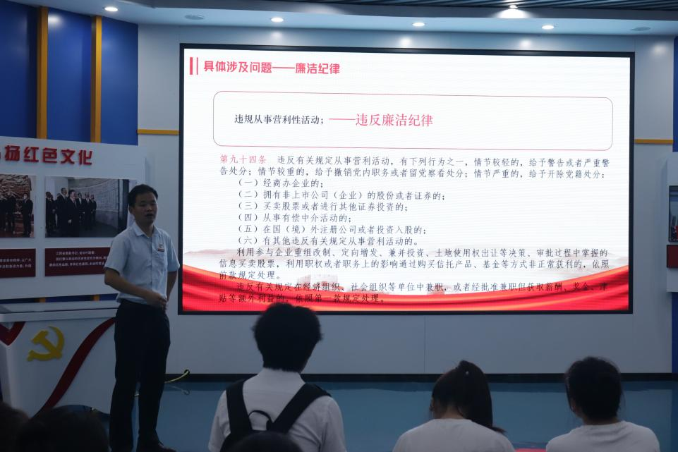 2024年6月13日下午,在红色文化记忆馆开展“纪”在心间--党纪学习教育微课堂第一期课程,本次课程由人工智能学院学生党支部书记任郑伟主讲,主讲题目为《党纪处分案例分析--彭敏(九江市人民政府原党组成员、副市长)》,通过案例分析进一步加强学生党员对《中国共产党纪律处分条例》的学习与认识,全体学生党员参加本次学习。