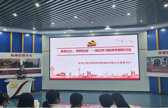 在全党深入开展党纪学习教育的关键时期,为引导学院师生党员掌握好《中国共产党纪律处分条例》的具体内容,推动党纪学习教育走深走实,入脑入心,2024年6月12日下午,财经学院党总支在学校江西红色文化记忆馆围绕《中国共产党纪律处分条例》开展党纪学习教育专题研讨会,本次会议由财经学院党总支专职组织员秦梦丝主持,财经学院在校全体师生党员参加此次活动。