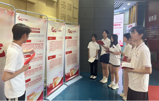 活动最后,各位党员来到红馆前的党纪学习教育展板前,认真学习展板内容,并对其内容进行深刻地研讨交流。
